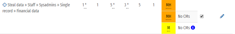 The target risk assessment calculation sets the confidence for all existing countermeasures to 100%. This is on the assumption that your target should be to get full confidence in your existing countermeasures, as well as implementing your target countermeasures. This means that some risks can have lower scores for target risk than residual risk without having target countermeasures. This will be indicated by a blue information icon in the risk table.