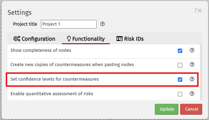 By default in RiskTree, countermeasures are either existing and proven (and affect residual risk), or they are not (in which case they affect the target risk only). However, it is often the case that a countermeasure is in place but you do not have full confidence in it. For example, a SIEM tool might have been installed and configured, but are you sure that it will detect an attack? Perhaps only once penetration or other testing is complete will you gain confidence.