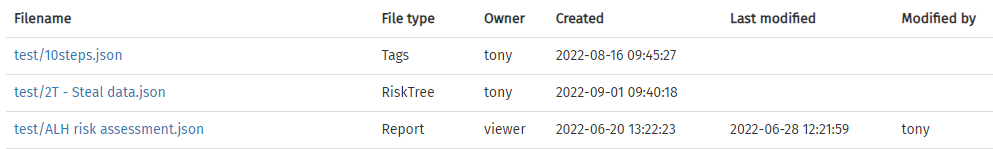 The table below shows the files held in the chosen on-line storage, and to which you have access.