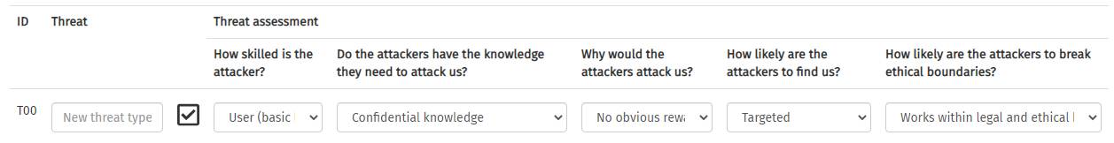 To add another attacker, click on the button. This adds a new row into the table.
