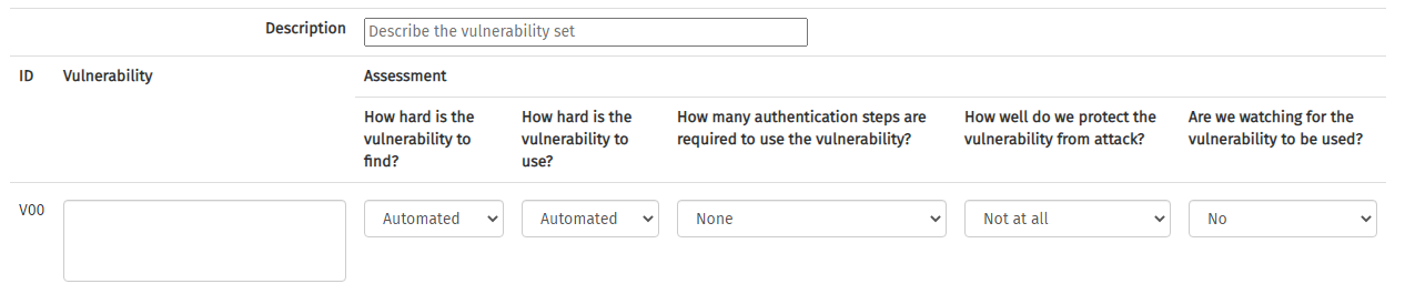 To add another vulnerability, click on the button. This adds a new row into the table.
